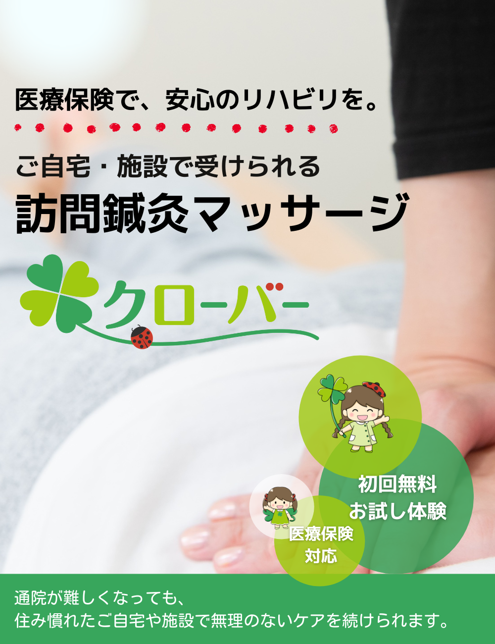 そんなお気持ちをお持ちの方のために、訪問鍼灸マッサージクローバーでは 初回無料のお試し体験 を行っています。